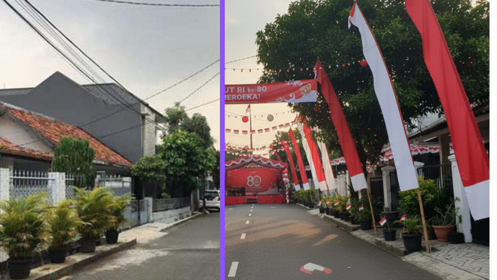 Visualisasikan dekorasi kemerdekaan 17 Agustus di rumah atau ruang Anda secara realistis menggunakan AI.