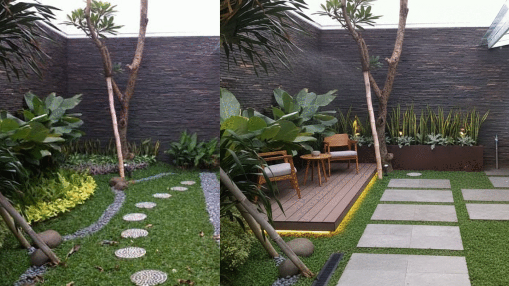 Desain dan visualisasikan taman realistis menggunakan AI, siap untuk direalisasikan.
