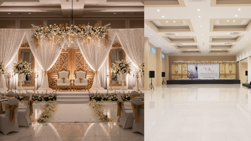Visualisasikan pelaminan dan dekorasi pernikahan impian Anda secara realistis menggunakan AI.