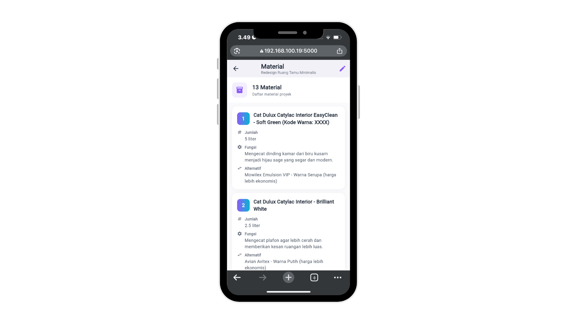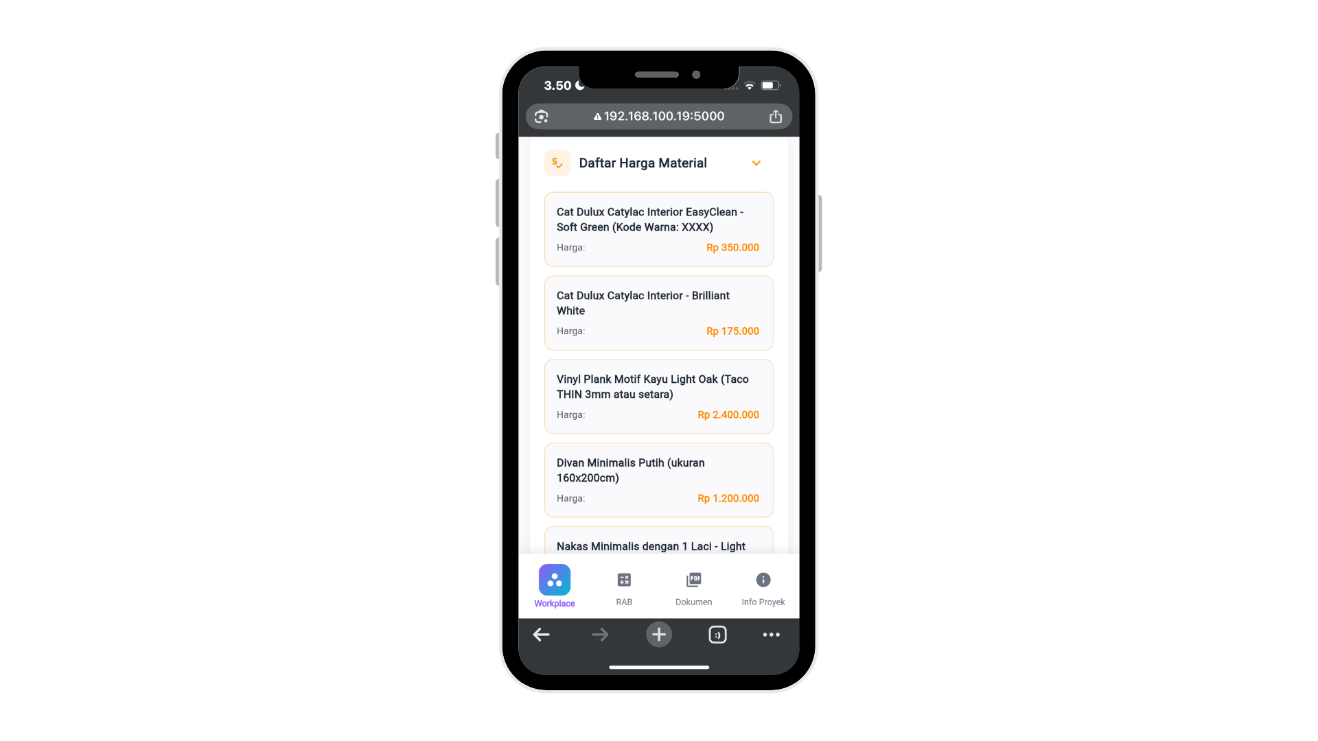 Langsung dapatkan daftar belanja material lokal lengkap dengan estimasi biaya. Semua dirancang agar Anda bisa tahu kebutuhan proyek dengan cepat,EDITABLE, dan efisien.